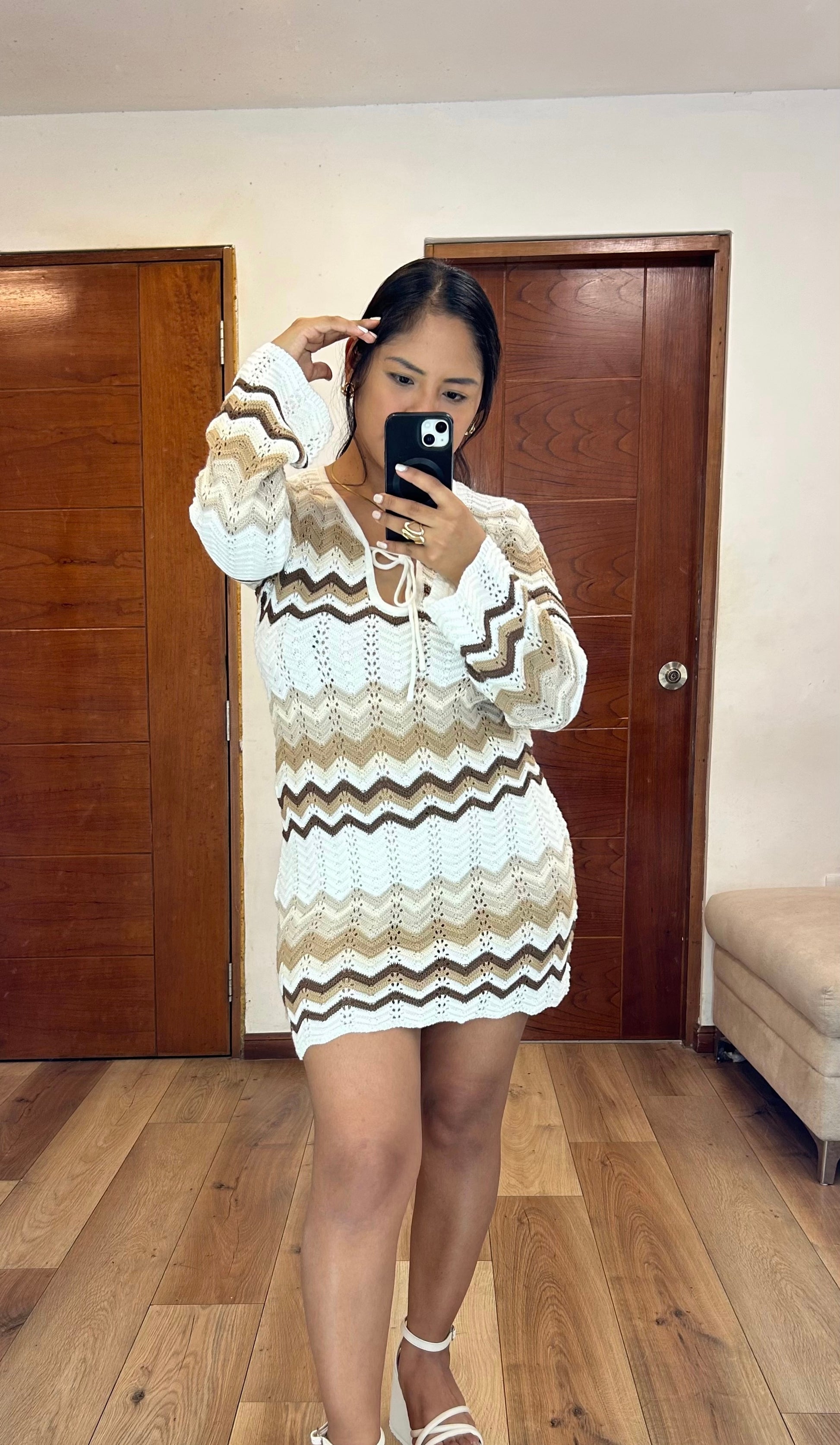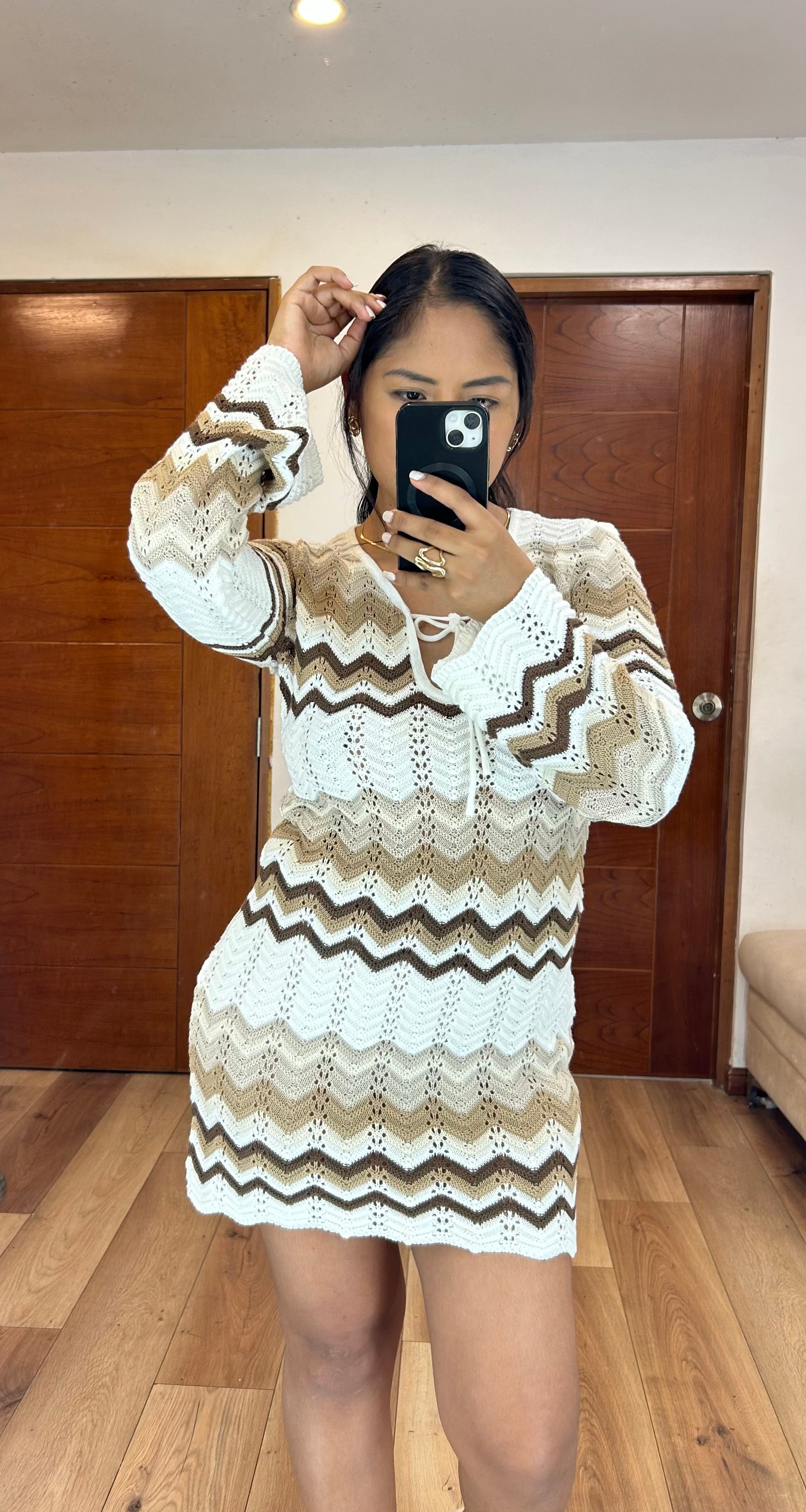 Vestido de hilo color café talla standar.