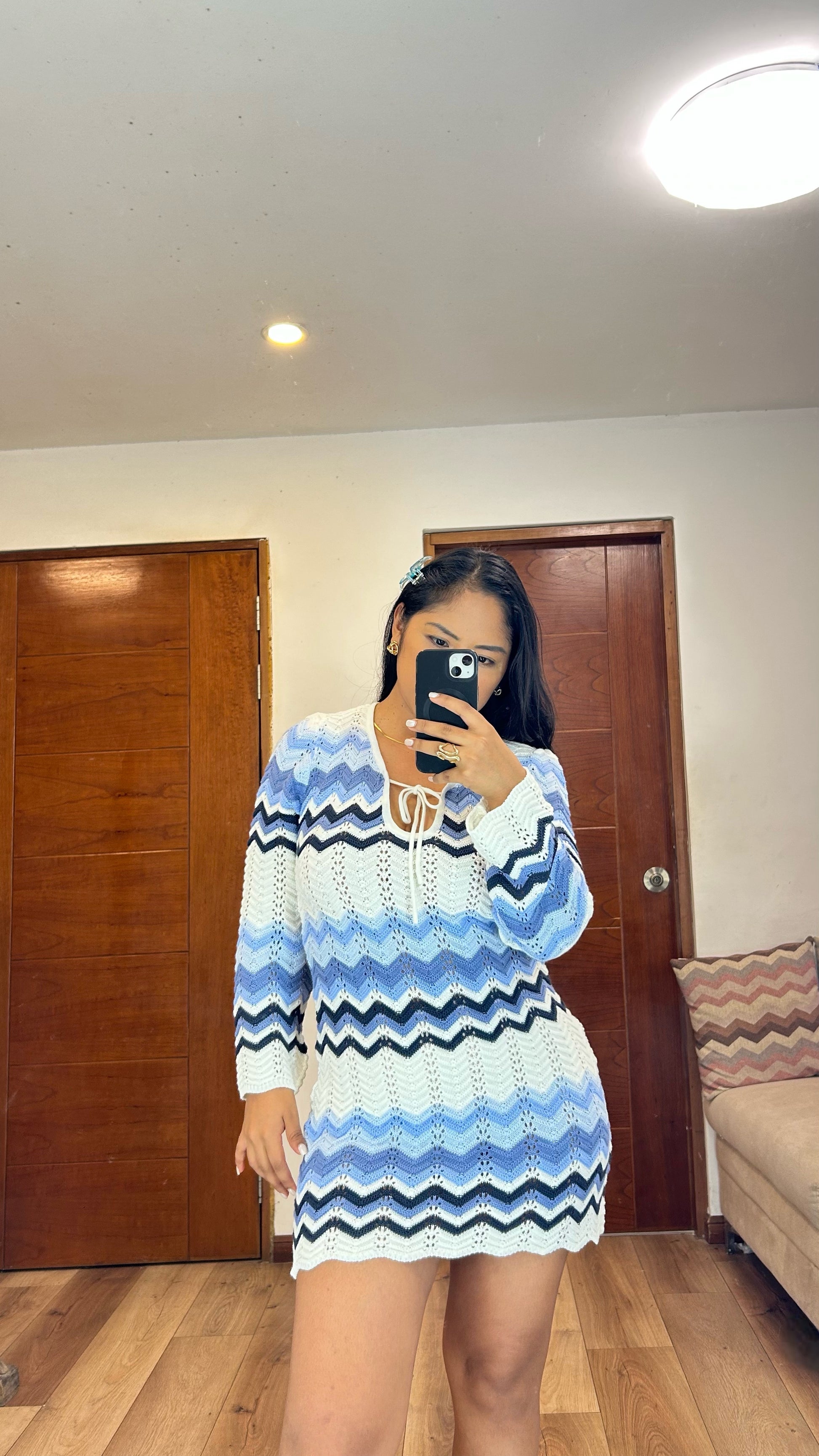 Vestido de hilo color azul standar.
